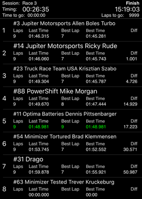 9:50 to 10:10 am -- ChampTruck Qualifying for Heat 1. Mike Morgan had the fourth fastest time and will start in the second row.