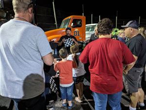 The #46 truck blew a turbo in lap 8 and did not finish. With a red flag stop, the track was cleared of debris and fluids before the restart. Mike Morgan started in 4th and finished in 3rd. Scott Treadway took 1st and Austin Hoppe took 2nd.